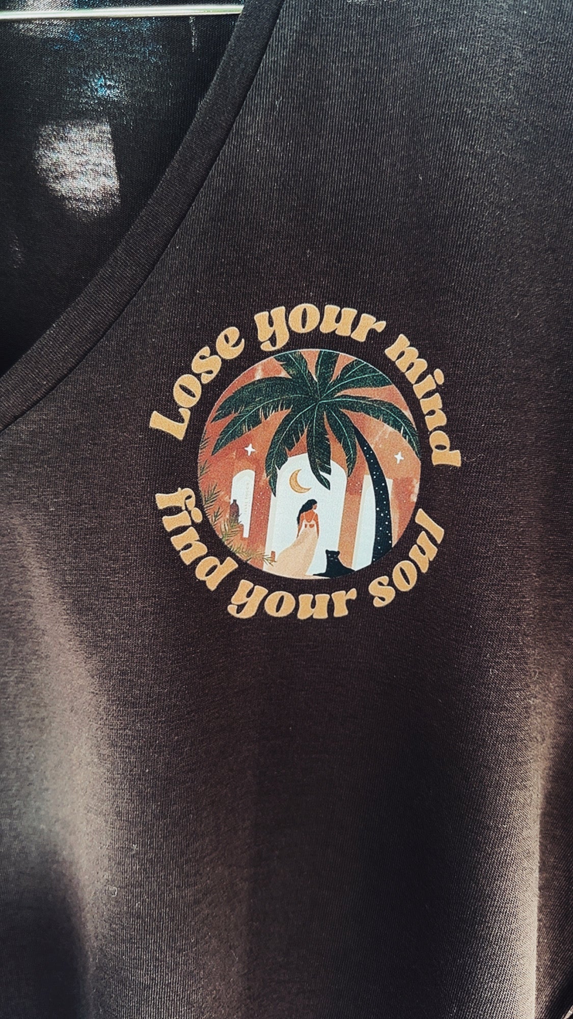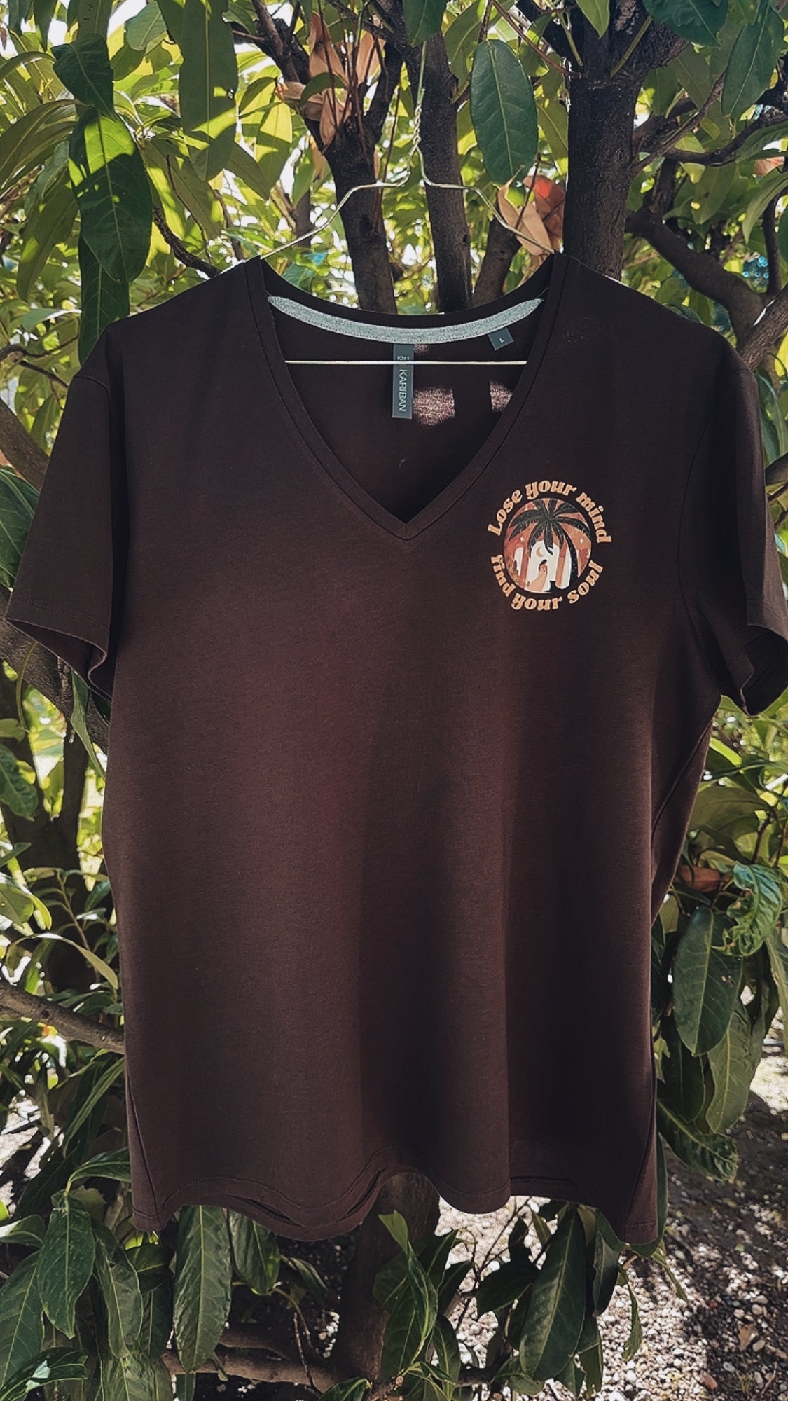 New ! "Lose your mind find your soul" V-neck t-shirt in chocolate brown