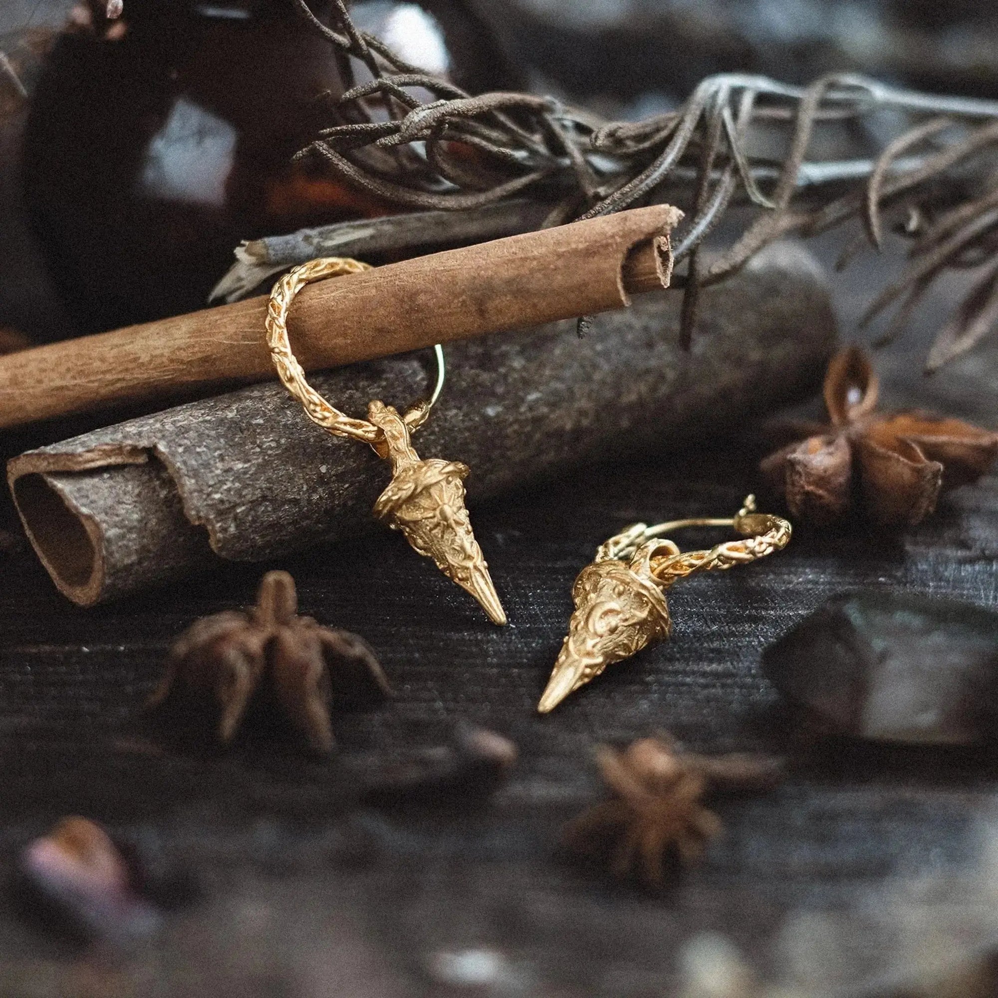 Our Starlit Whisper Hoop Earrings combine celestial beauty with grounded elegance. Each charm is etched with sun, moon, and star symbols, reflecting the cosmic rhythms that guide us. Suspended from delicate, branch-like hoops, they bring a soft yet empowered presence, framing the face with radiant movement. Wear them daily or string them as pendulums for divination, a reminder of the wisdom that surrounds and resides within. Comes with a dowsing board for intuitive guidance, wherever you are.